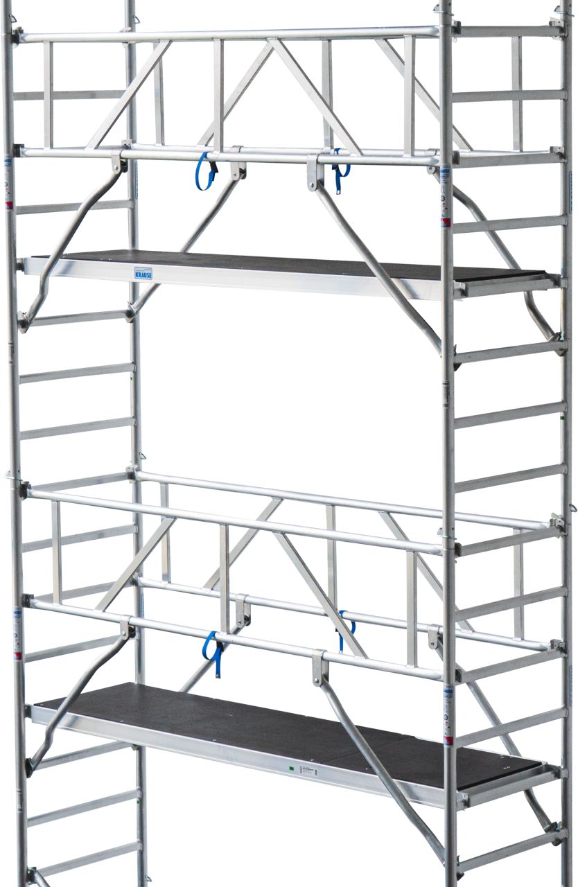 + Maximaler Belagbühnenabstand von 2 m für komfortablen und sicheren Aufbau ohne Hilfsmittel