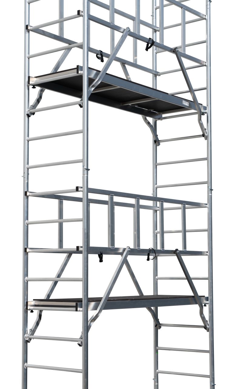 + Maximaler Belagbühnenabstand von 2 m für komfortablen und sicheren Aufbau ohne Hilfsmittel