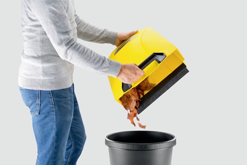 Ob Blütenblätter im Frühling · Sand im Sommer · Laub im Herbst oder Streugut im Winter: Die effektive und ergonomische Kehrmaschine S 4 von Kärcher sorgt ganzjährig in Rekordtempo für glanzvolle Zeiten rund um Haus und Garten. Mit ihrer kräftigen Kehrwalze · ihrem Seitenbesen und einer Kehrbreite von insgesamt 510 Millimetern kehrt sie mühelos Flächen von bis zu 1800 m² pro Stunde. Die Maschine befördert das Kehrgut direkt in den 20 Liter fassenden Kehrbehälter. Die langen Borsten der Seitenbesen sorgen für gründliche Sauberkeit bis zum Rand. Der stufenlos höhenverstellbare Schubbügel lässt sich optimal an die Körpergröße des jeweiligen Anwenders anpassen. Dank des verwendeten Bajonettverschlusses kann bei der Höhenverstellung auch keine Schraube mehr verloren gehen. Die Kehrmaschine kann bei Bedarf ohne Bücken ganz einfach durch eine Trittfläche am Rahmen komplett umgeklappt und am Handgriff getragen werden – für eine platzsparende Aufbewahrung. Einzigartig ist die werkzeuglose Seitenbesenanbringung. So ist die Kehrmaschine im Nu einsatzbereit. Der Kehrgutbehälter lässt sich leicht entnehmen und kann ohne Schmutzkontakt sicher abgestellt und entleert werden.
