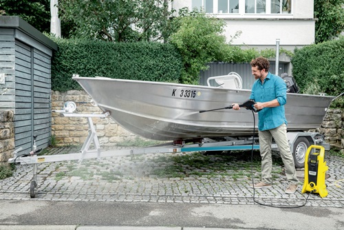 Glänzt auch ohne Stromanschluss: der akkubetriebene Hochdruckreiniger für vielseitige Anwendungsgebiete wie kleinere Autos · Boote · Gartenmöbel · Mülltonnen und weitere kleinere Reinigungsaufgaben rund ums Haus. Dank Standard- · Boost- und Reinigungsmittel-Modus lassen sich die verschiedenen Reinigungsobjekte mit genau dem richtigen Druck bearbeiten. Auf dem analogen Display der Hochdruckpistole wird der gewählte Modus während der Reinigung dauerhaft angezeigt. Die einzelnen Druckstufen können bequem durch den Wechsel des Strahlrohrs eingestellt werden. Das Gerät ist kompatibel mit dem 36 V / 5,0 Ah Li-Ion Wechselakku aus der 36 V Kärcher Battery Power-Plattform. Akku und Ladegerät sind als Sonderzubehör separat erhältlich. Zudem kann ein Kärcher Ansaugschlauch angeschlossen werden · um Wasser aus alternativen Wasserquellen anzusaugen.