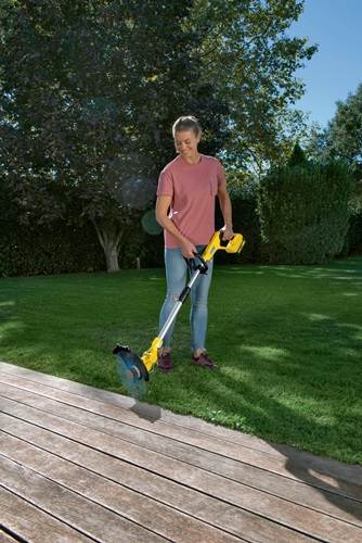 Unwirtliche Ecken gibt es in jedem Garten überall dort · wo man mit dem Rasenmäher nicht gut hinkommt oder eine angrenzende Hauswand oder ein Strauch im Weg sind. Für Arbeiten in solch verwinkelten Ecken braucht es ein kleines · flexibles und auf jeden Fall leistungsstarkes Gerät: einen Rasentrimmer von Kärcher. Dieser enthält einen gedrehten Schneidfaden · der per automatischem Fadennachschub auf der Fadenspule konstant nachgestellt wird. So ist bei jedem Schnitt stets die perfekte Länge des Trimmerfadens gegeben und saubere Schnittergebnisse sind garantiert. Besonders angenehm ist dabei · dass das Arbeiten sehr geräuscharm vonstattengeht und die Fadenspule werkzeuglos mit wenigen Handgriffen gewechselt werden kann. Und weiter geht’s · den letzten Grashälmchen auf der Spur.