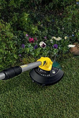 Der akkubetriebene Rasentrimmer LTR 18-30 Battery ermöglicht dank des gedrehten Schneidfadens einen präzisen Schnitt · kommt problemlos in alle Ecken und Engstellen im Garten und sorgt mit seiner Kantenschneidfunktion für eine saubere Rasenkante entlang von Wegen und Terrassen. Dabei ist jederzeit die perfekte Fadenlänge garantiert · da der Faden automatisch nachgestellt wird. Für das Trimmen von Gras unter niedrigen Hindernissen kann der Neigungswinkel schnell und einfach verstellt werden. Der ausklappbare Pflanzenschutzbügel verhindert ein versehentliches Verletzen von Blumen und Bäumen. Und dank des teleskopierbaren Stiels sowie eines in der Höhe verstellbaren Zweithandgriffs ist ergonomisches und aufrechtes Arbeiten mühelos möglich.