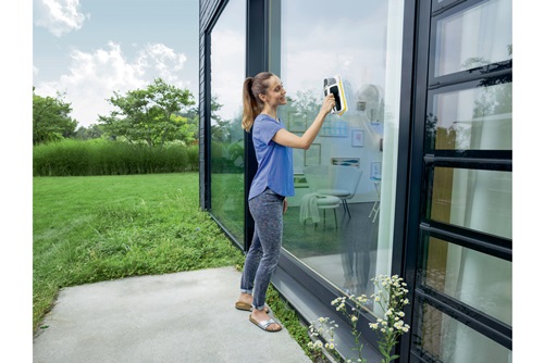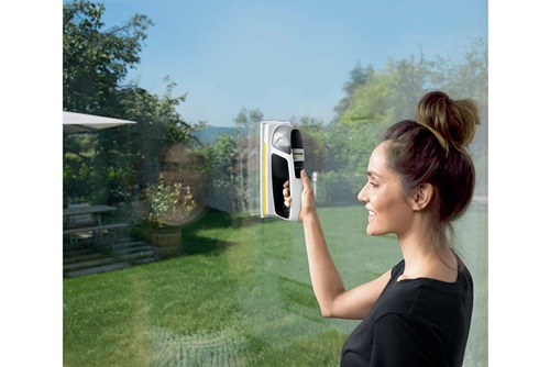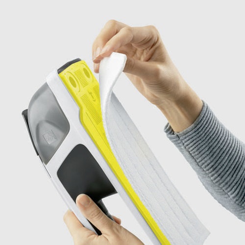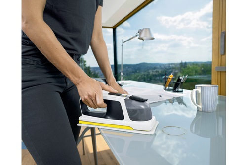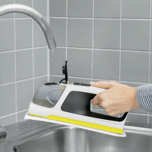 Fenster · Spiegelflächen · Glastische · Fliesen und sämtliche weitere glatte Oberflächen werden mit dem vibrierenden Akku-Wischer KV 4 inklusive 2 Wischtüchern · 4-mal 20 Milliliter Reinigungsmittel · Ladegerät und weiteren Extras mühelos sauber. Dank des elektrischen Wasseraustrags in Kombination mit Vibration löst sich der Schmutz von der Oberfläche wie von selbst – ganz ohne lästiges Schrubben. Zwei simple Bedienelemente machen den handlichen Akku-Wischer intuitiv bedienbar. Die Vorbereitungszeit ist minimal: Einfach den Tank mit dem beigelegten Reinigungsmittelkonzentrat und Wasser befüllen · schon kann es losgehen. Das mitgelieferte Wischtuch des KV 4 ist zudem waschbar und somit wiederverwendbar. Nach der Anwendung lässt sich die restliche Flüssigkeit am besten mit einem Akku-Fenstersauger von Kärcher absaugen.