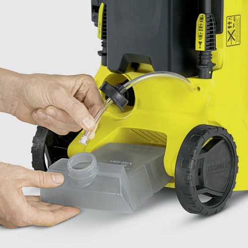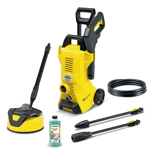 Dank des praktischen Anwendungsberaters in der Home & Garden App · die den K 3 Power Control-Hochdruckreiniger unterstützen kann · ermöglicht Kärcher ein noch besseres Reinigungsergebnis – und macht den Nutzer zum Reinigungsexperten. Zudem bietet die App einen Rundumservice inklusive Infos zum Gerät · der Anwendung und dem Kärcher Serviceportal. Die richtige Druckstufe lässt sich am mitgelieferten Strahlrohr einstellen und an der Anzeige der Pistole überprüfen – für maximale Kontrolle und den idealen Druck bei jeder Oberfläche. Das Reinigungsmittel lässt sich über den integrierten Reinigungsmitteltank schnell · einfach und komfortabel aufbringen. Weiter überzeugt der K 3 Power Control von Kärcher mit einem ausziehbaren Teleskopgriff für bequemes Ziehen und Verstauen · einem Standfuß für mehr Stabilität · Halterungen für Zubehöre · Hochdruckpistole und Kabel sowie dem Kärcher Quick Connect-System. Der Standfuß kann auch als Tragegriff verwendet werden · wodurch sich das Gerät ganz leicht verstauen und verladen lässt. Das Home Kit gewährleistet eine spritzfreie Reinigung größerer Flächen rund ums Haus und beinhaltet den Flächenreiniger T 5 sowie 1 l Steinreiniger 3-in-1.