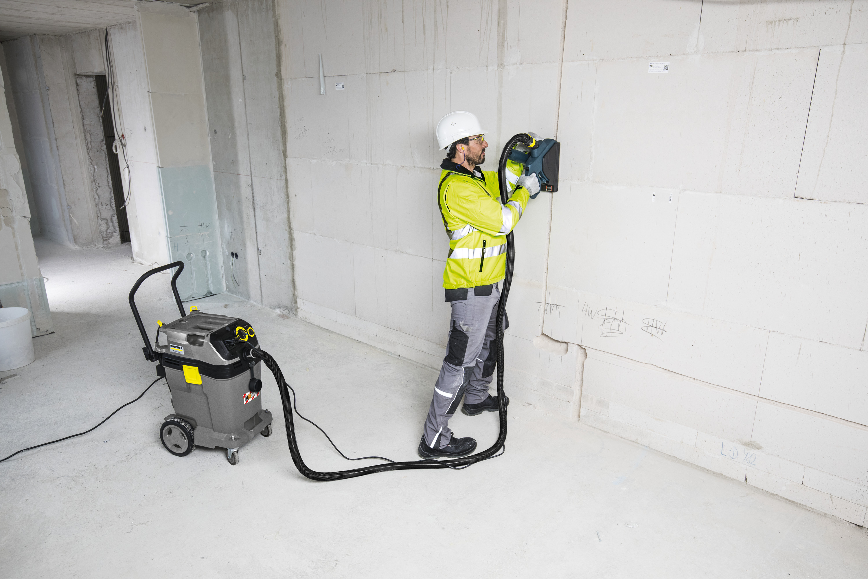 Ein großer 50-Liter-Behälter mit verstellbarem Schubbügel und Ablassschlauch prädestiniert unseren Nass-/Trockensauger NT 50/1 Tact Te H zur sicheren Beseitigung von gesundheitsgefährdenden und krebserregenden Stäuben, insbesondere im industriellen Umfeld. Das Gerät ist für ausnahmslos alle Stäube der Staubklasse H – inklusive Asbeststaub – geprüft und zugelassen und trägt damit dazu bei, Anwender und weitere beteiligte Personen sicher vor Gesundheitsgefahren zu schützen. Mit der neuen Doppelfiltration lassen sich aber nicht nur gefährliche Stäube mit Sicherheitsfilterbeutel aufnehmen, sondern auch große Mengen weniger gefährlicher Stäube, die direkt in den Behälter gesaugt werden können. Hier kommt das nochmals verbesserte, hocheffiziente Tact-System zum Einsatz. Darüber hinaus verfügt der NT 50/1 Tact Te H über eine Gerätesteckdose mit Automatikanlauf sowie das komplette Antistatiksystem inklusive leitenden Zubehörs.