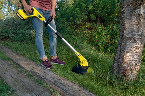 Unwirtliche Ecken gibt es in jedem Garten überall dort · wo man mit dem Rasenmäher nicht gut hinkommt oder eine angrenzende Hauswand oder ein Strauch im Weg sind. Für Arbeiten in solch verwinkelten Ecken braucht es ein kleines · flexibles und auf jeden Fall leistungsstarkes Gerät: einen Rasentrimmer von Kärcher. Dieser enthält einen gedrehten Schneidfaden · der per automatischem Fadennachschub auf der Fadenspule konstant nachgestellt wird. So ist bei jedem Schnitt stets die perfekte Länge des Trimmerfadens gegeben und saubere Schnittergebnisse sind garantiert. Besonders angenehm ist dabei · dass das Arbeiten sehr geräuscharm vonstattengeht und die Fadenspule werkzeuglos mit wenigen Handgriffen gewechselt werden kann. Und weiter geht’s · den letzten Grashälmchen auf der Spur.