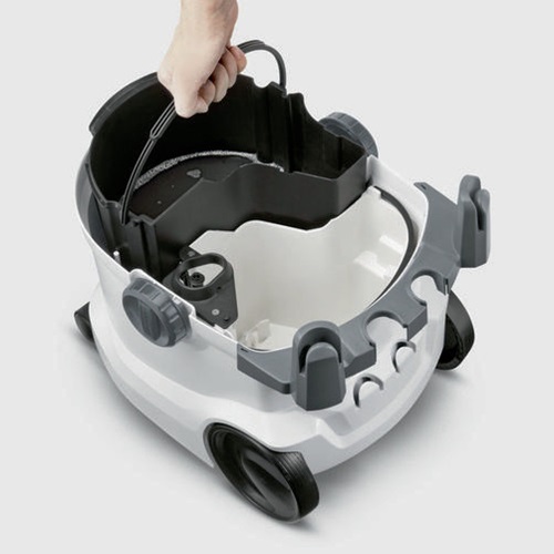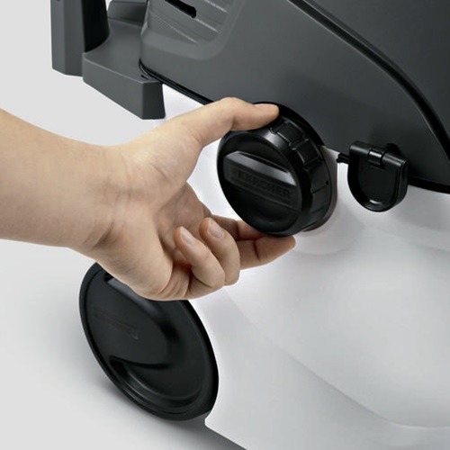 Der NT 48/1 hat ein Behältervolumen von 48 Litern. Das Gerät ist ausgestattet mit einem integrierten Netzkabelhaken am Turbinenkopf, einer Zubehöraufnahme für Saugrohre sowie einer Boden- und Fugendüse am Behälter. Der große Patronenfilter mit einer Filterfläche von 0,8 m² sorgt für eine konstant hohe Saugleistung des Gerätes. Das zuverlässige Schwimmersystem sorgt für eine rechtzeitige Unterbrechung des Luftstromes bei allen aufgesaugten Flüssigkeiten. Durch die große Ablagefläche auf dem Gehäusekopf lassen sich Werkzeuge oder andere Utensilien jederzeit griffbereit unterbringen. Ausgestattet ist der NT 48/1 zusätzlich mit einem Ablassschlauch und einem robusten Fahrwerk mit großen Bockrollen und Lenkrollen. Eine Feststellbremse und integrierte Griffmulden am Behälter ermöglichen einen einfachen Transport.