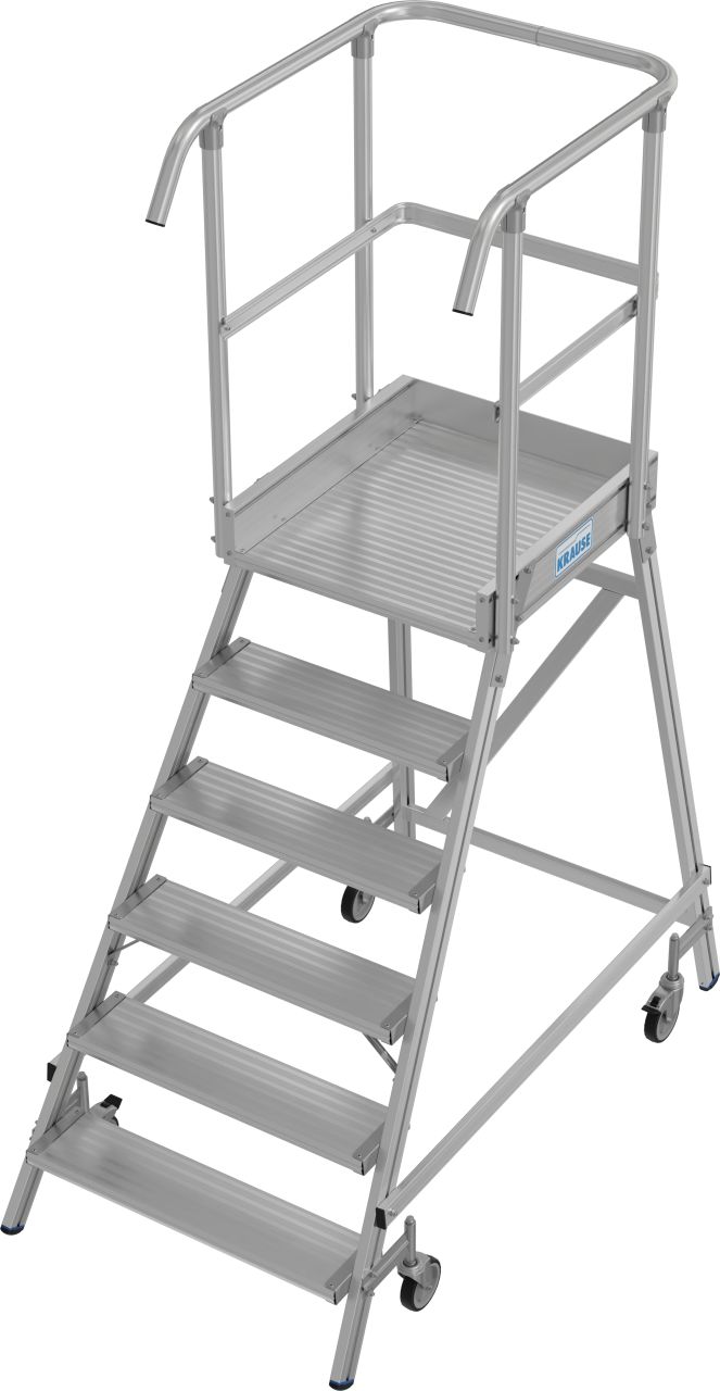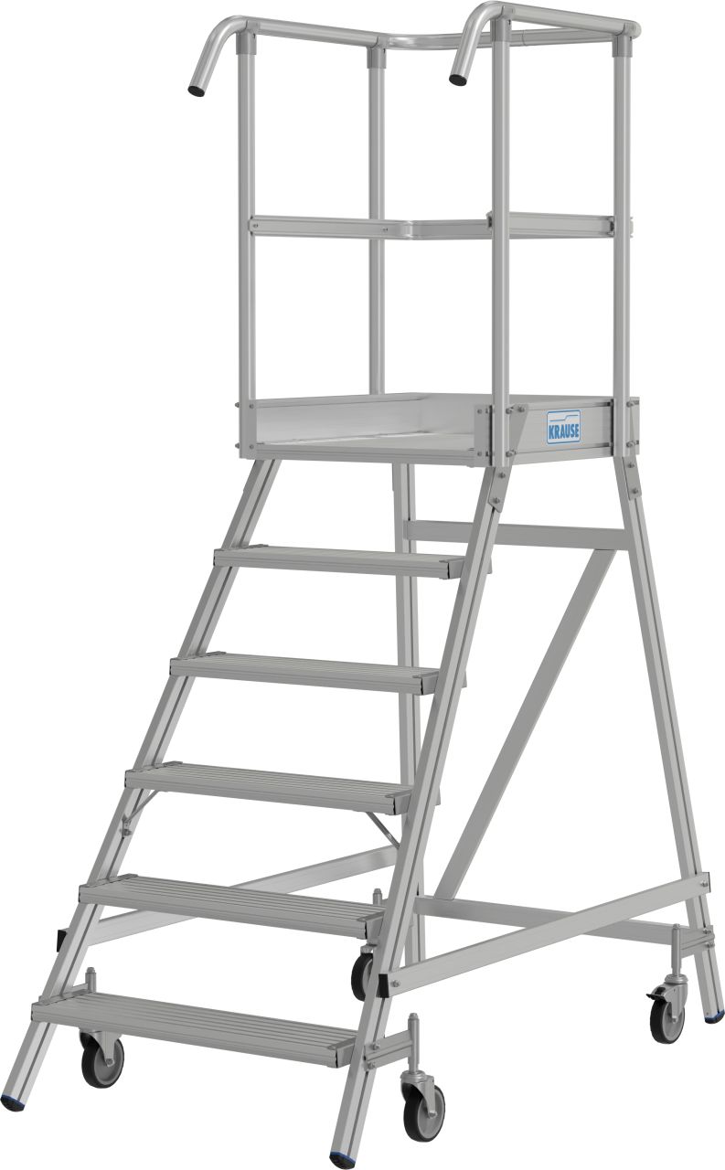 Fahrbare Stufen-Plattformleiter mit großer, komfortabler Standflächeund Sicherheitsbügel.- Extra hoher (1,0 m) Bügel mit integrierter Ablage fürrückenschonendes Arbeiten- Große Standplattform 500 x 450 mm- Stabile Quertraverse mit integrierten Fahrrollen für einen sicherenStand und einen leichten Transport der Leiter- Beidseitig angebrachte Handläufe für einen sicheren Auf- und Abstieg- Im aufgebauten Zustand leicht zu verfahren- Auch zusammengeklappt ergonomisch zu transportieren- Integrierte Zug- und Drucksicherungen für einen sicheren Stand