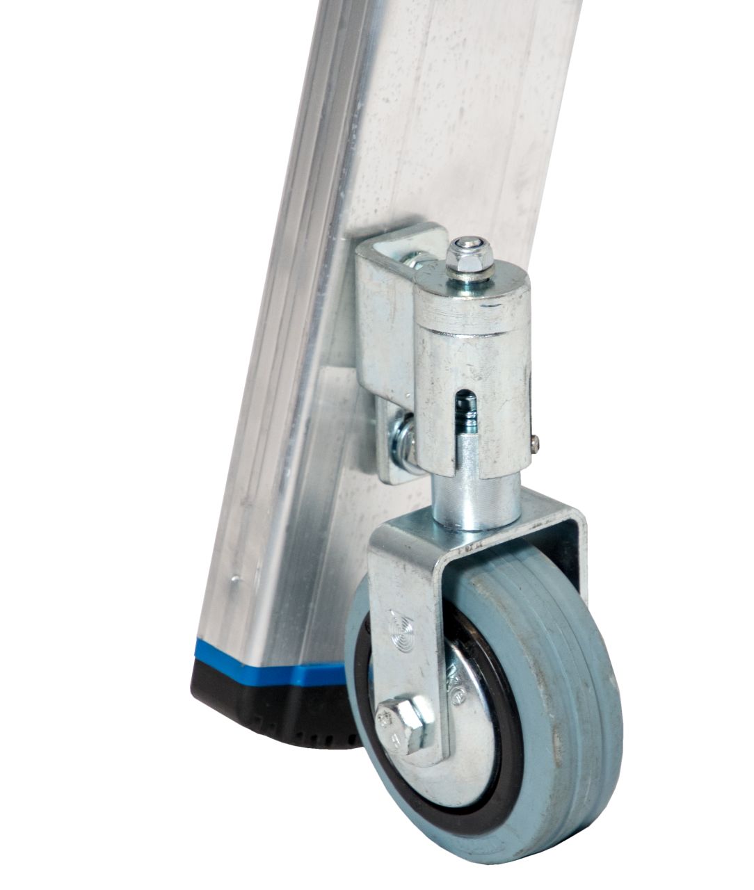 + Leiterneigung 21° und in der Parkposition senkrecht am Regal platzsparend abstellbar