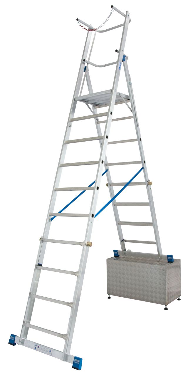 + Dank der Breite von nur 900 mm kann die Leiter direkt am Objekt stehen