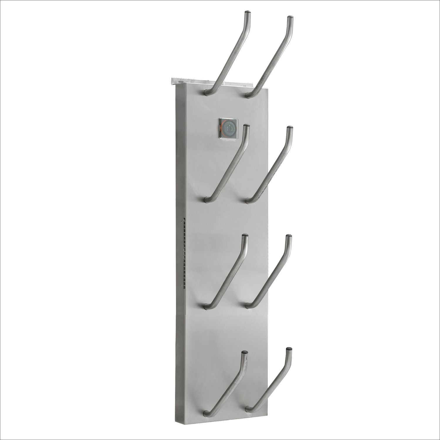 Die OSMA „elegance“-Paneele bieten erhöhte Stabilität und ein modernes Design. Die Form der Halteorgane ermöglicht ein leichteres Aufhängen von Halbschuhen, Kinderschuhen und Sportschuhen und verhindert das Kippen der Schuhe, was zu einer effizienteren Trocknung führt (optimal, wenn die Schuhspitze nach oben zeigt). Die glatte Frontseite erleichtert die Reinigung. Die Warmluft strömt vorne am Anschlussstopfen in alle Richtungen aus und garantiert eine noch schnellere Trocknung.